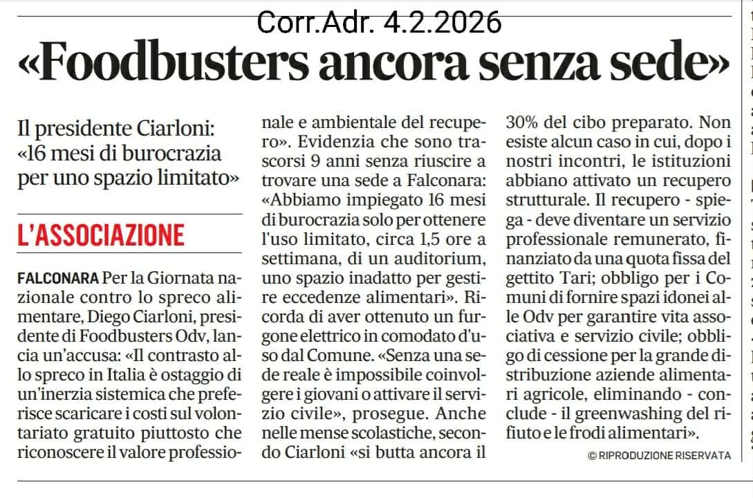 Sulla rubrica del Tg2 "Tutto il bello che c'è" condotto da Silvia Vacarezza è andato in onda un servizio sull'attività dell'associazione Foodbusters ovvero gli acchiappa-cibo con base nelle Marche a Falconara Marittima in provincia di Ancona. Nel servizio si racconta l'attività di recupero delle eccedenze alimentari nel caso di un matrimonio. In questo modo è possibile vedere come funziona un matrimonio eco-equo e solidale..